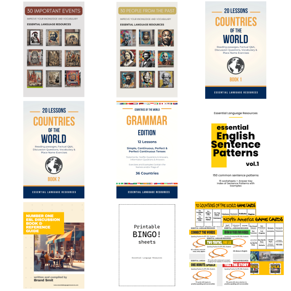 ![]() | 30 Important Events – History and vocabulary lessons for ESL students 30 lessons 101 pages SAMPLE | $20.00 |